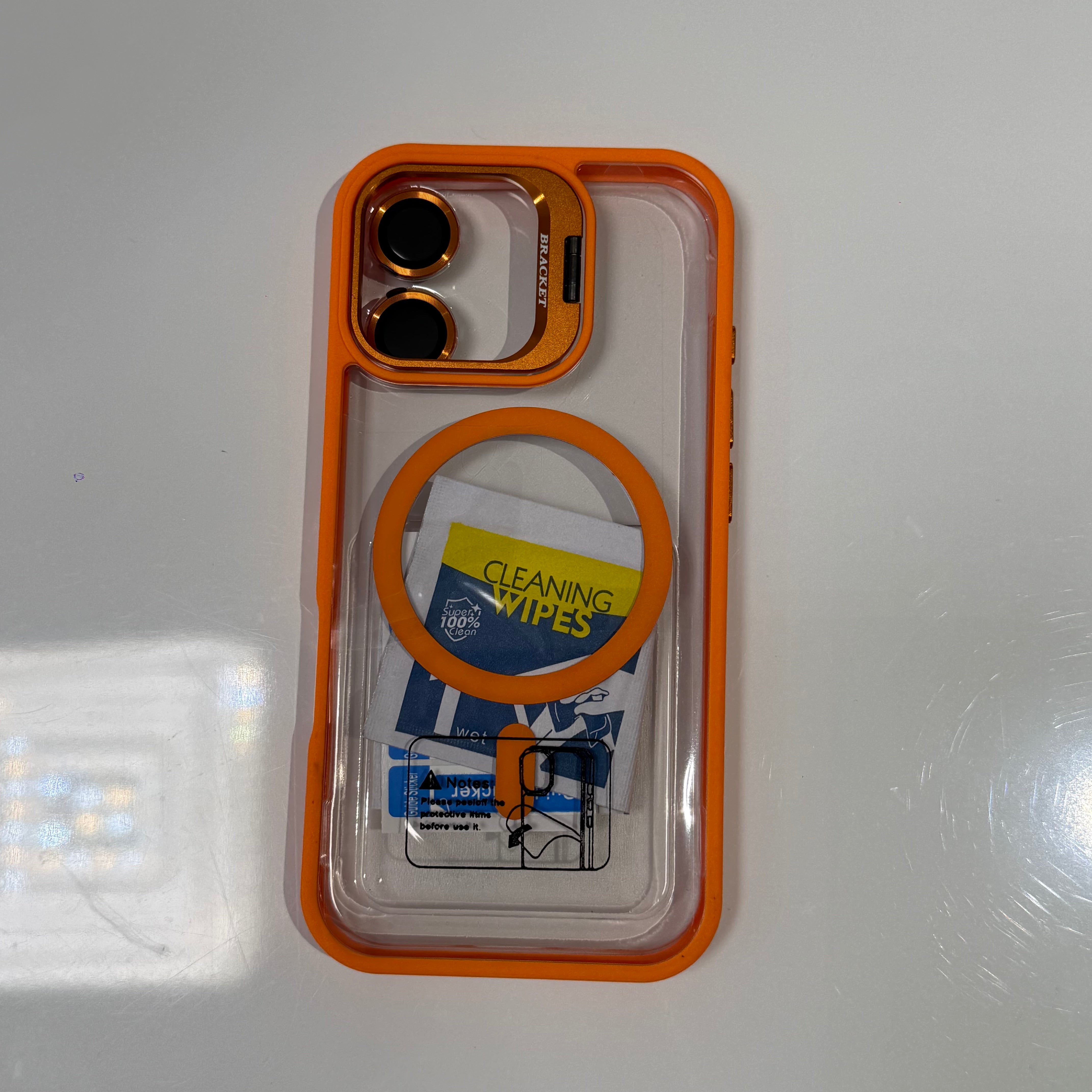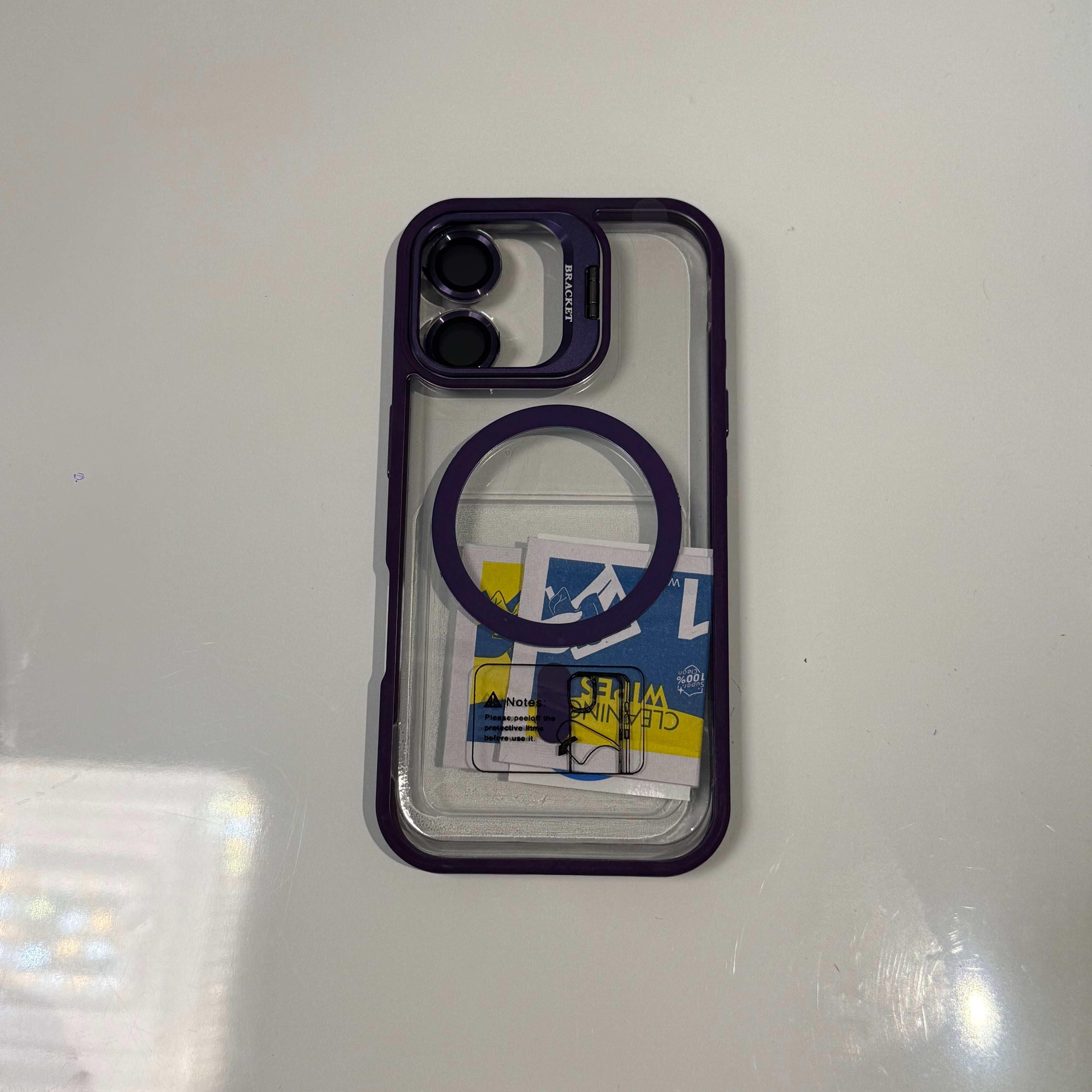 Features: Bracket phone Holder – pull out to use as stand Camera Lens Protector (sliding or snap style) Shock-proof bumper edges for...