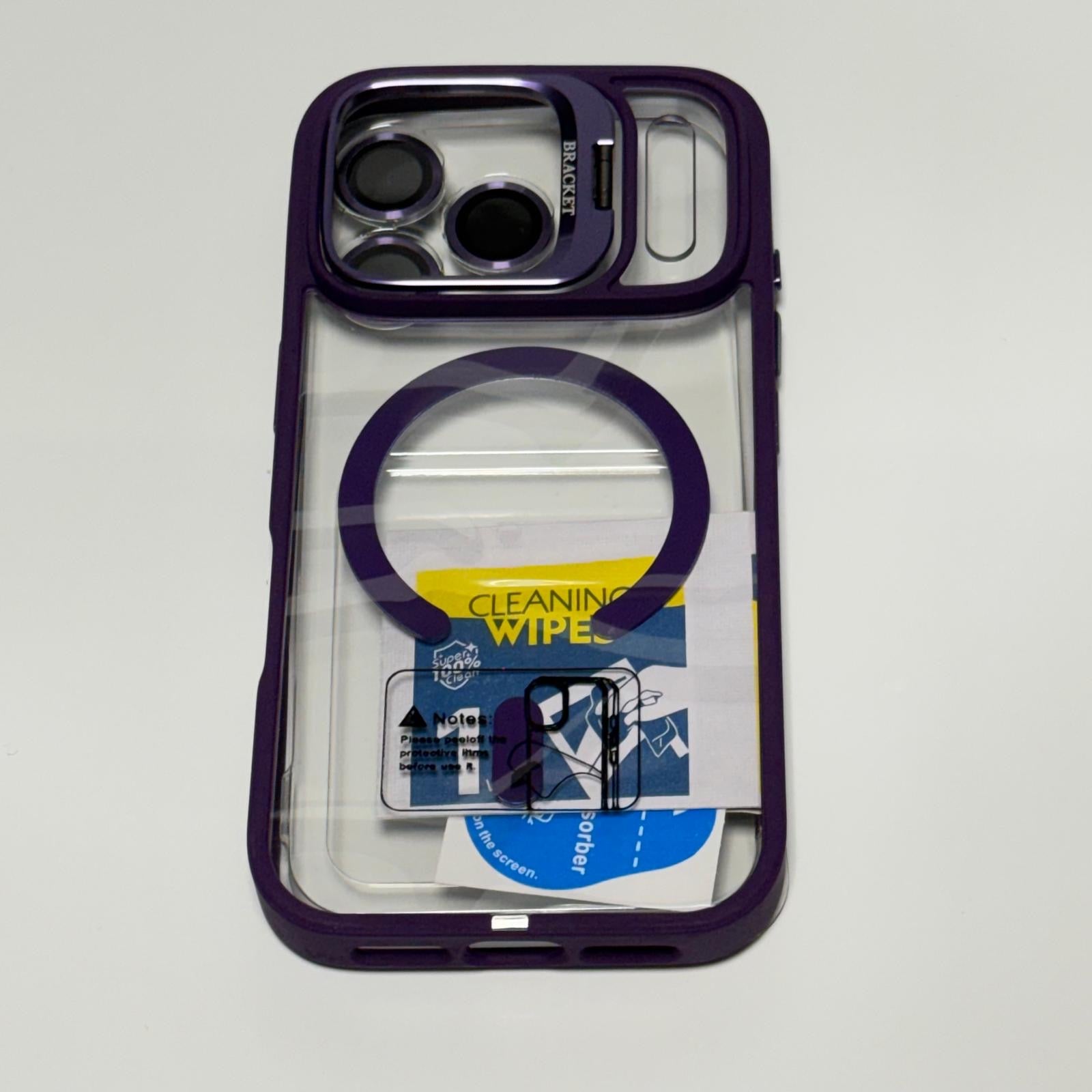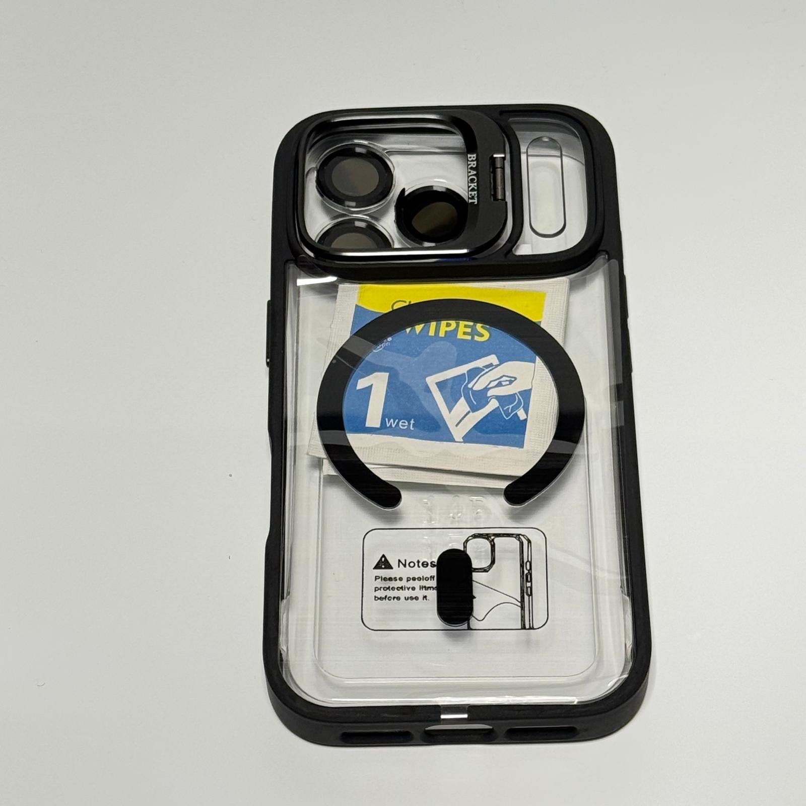 Features: Bracket phone Holder – pull out to use as stand Camera Lens Protector (sliding or snap style) Shock-proof bumper edges for...