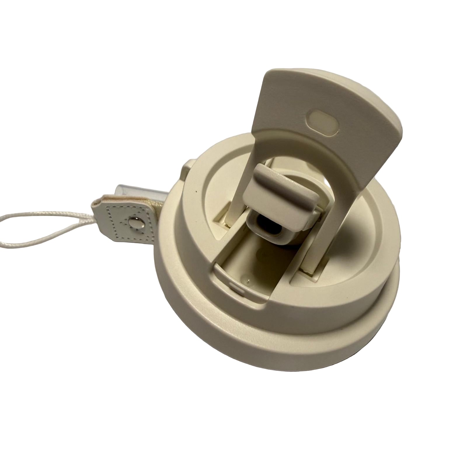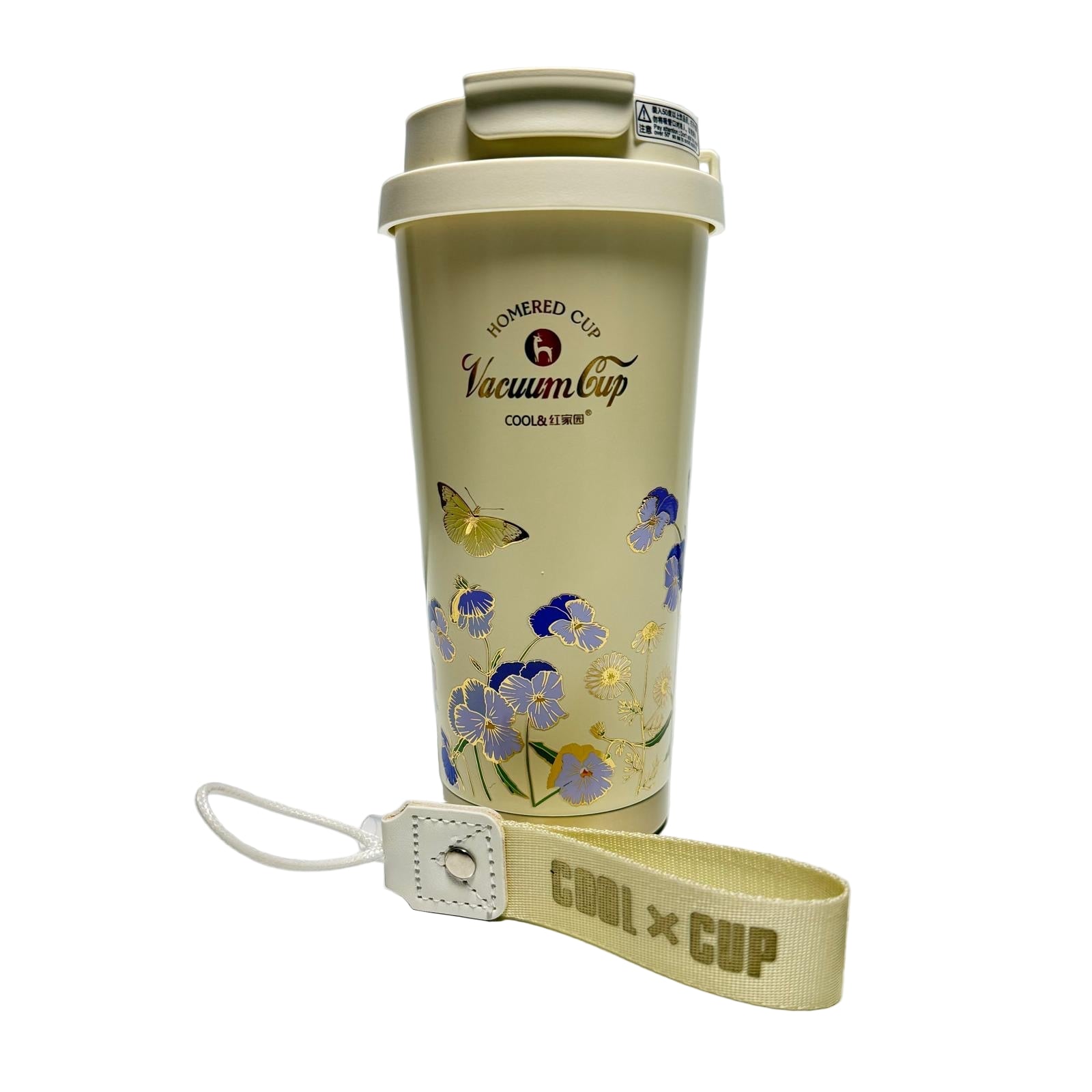Comes with a clear reusable straw and a detachable cream-coloured wrist strap for convenient carrying.