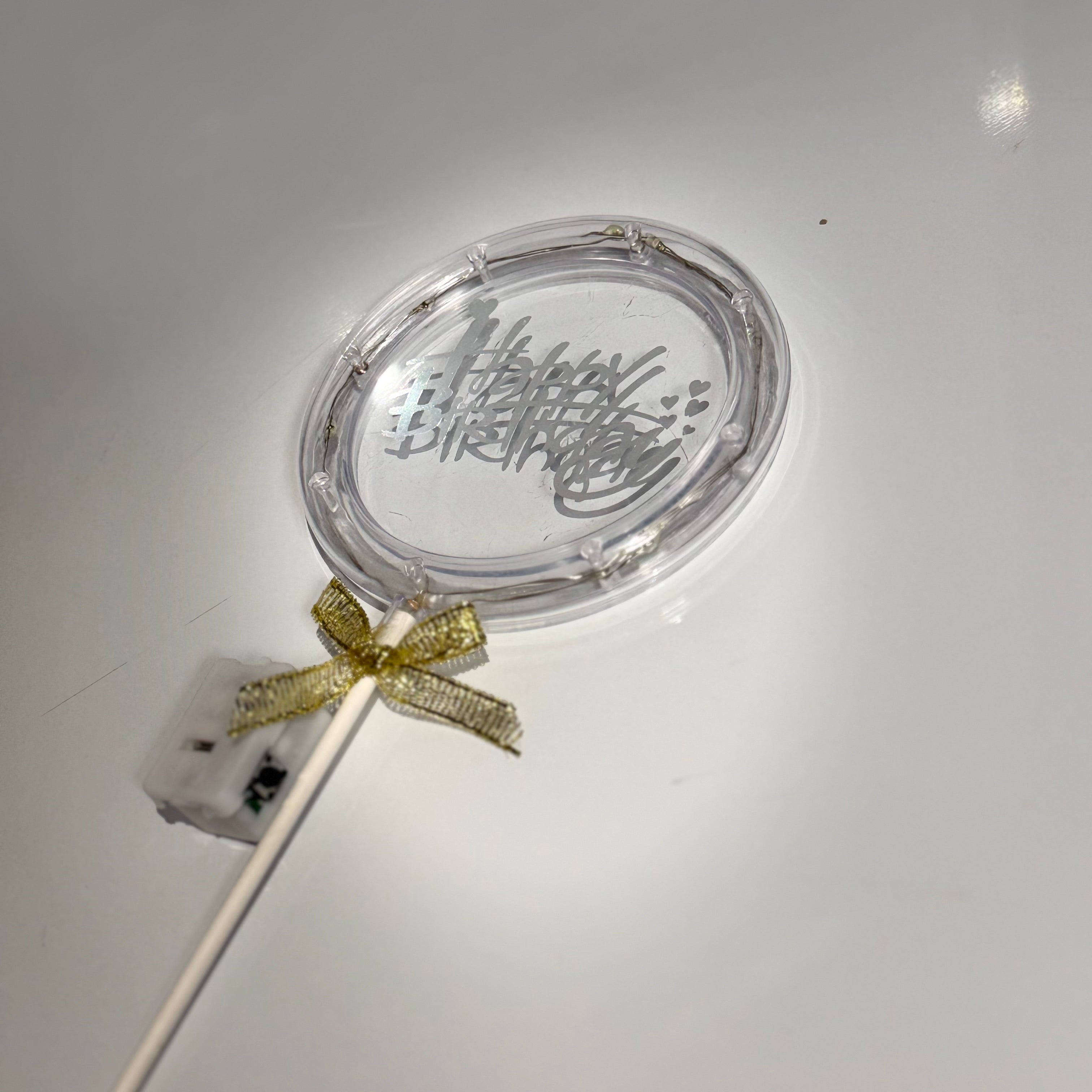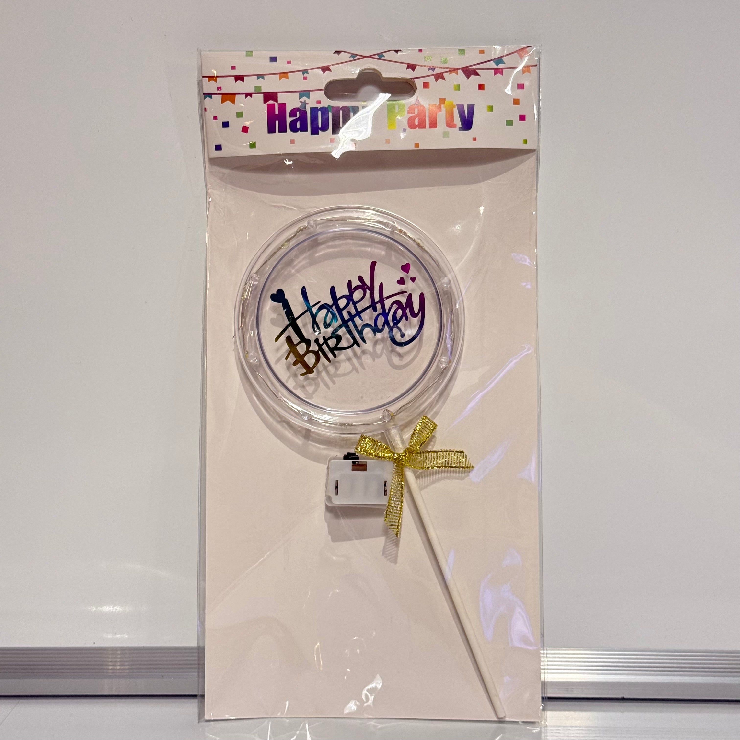 Featuring a clear circular design with a gold ribbon bow, each topper lights up in three modes — steady, slow flash, and fast flash — creating a beautiful glow for your cake. Available in gold, silver, and multi-colour, they’re perfect for night parties or adding a festive sparkle.